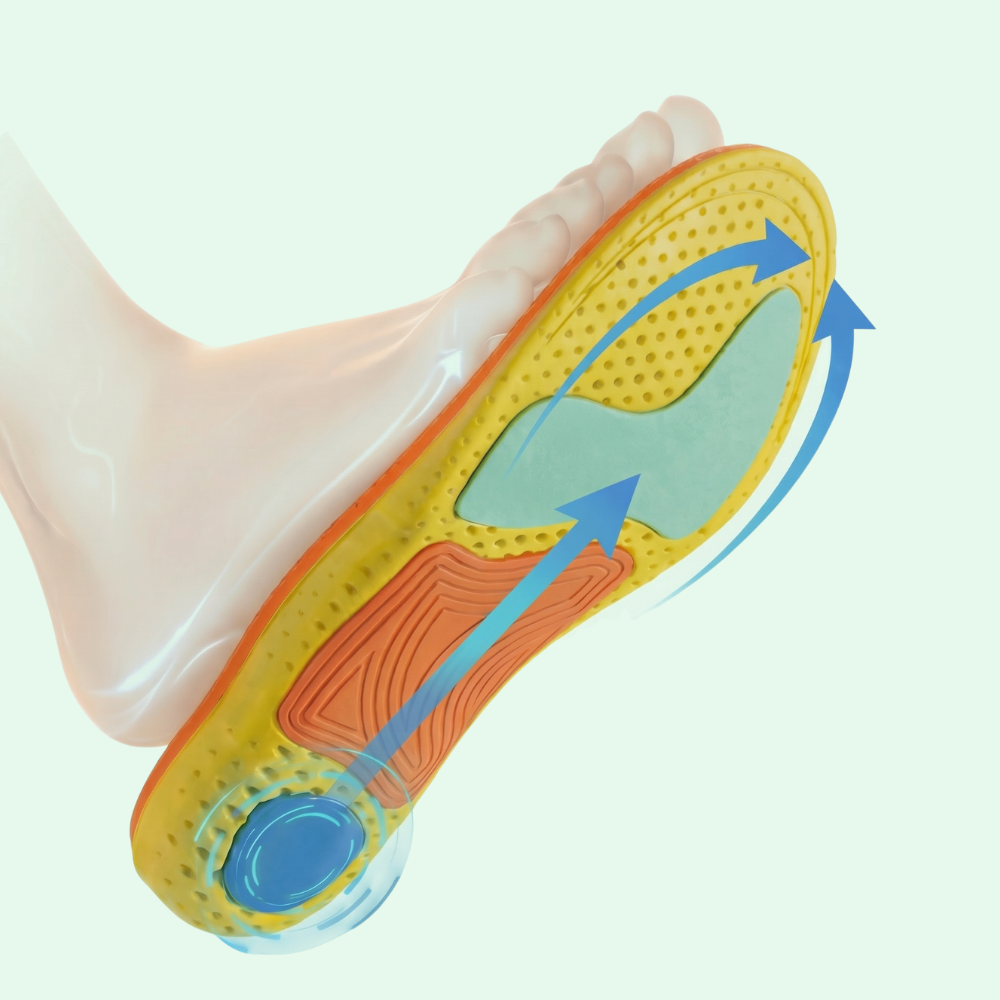 Those insoles use soft cushioning or static support. They feel comfortable but don't address the root cause—your weakened foot muscles.